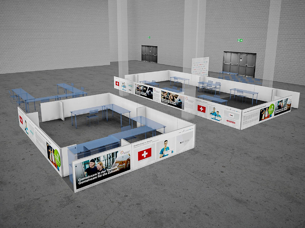 Für dieses intensive Training realisierten wir professionelle Wettkampfflächen, die höchste Ansprüche an Funktionalität und Präzision erfüllen. Unsere Aufgabe war der speditive und präzise Aufbau der Infrastruktur, die den Athleten eine optimale Umgebung für ihre komplexen Aufgaben bietet. Durch eine klare räumliche Strukturierung und die Integration der technischen Anforderungen schufen wir eine professionelle Arena, die sowohl den Fokus der Teilnehmer unterstützt als auch den Besuchern des Technoramas einen faszinierenden Einblick in die Welt der High-Tech-Berufe ermöglicht.